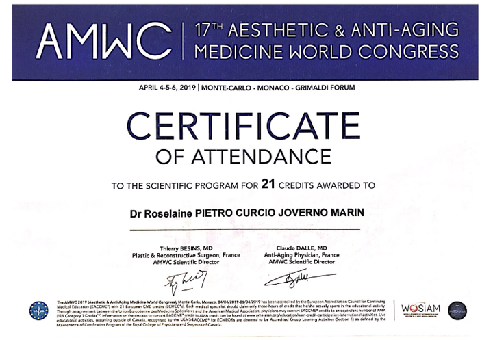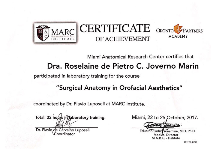 Curso Internacional de Anatomia Cirúrgica na Estética Orofacial no Instituto MARC em Miami (2017);