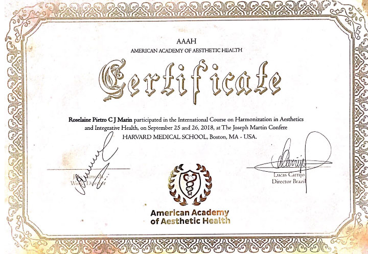 Curso Internacional de Harmonização em Estética e Saúde Integrativa na Instituição Harvard Medical School em Boston (2018);