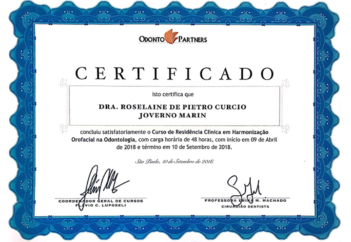 - Residência Clínica em Harmonização Orofacial na Odontologia em Preenchedores e Volumizadores Faciais, Fios Faciais PDO/PLLA e PRF (2018);