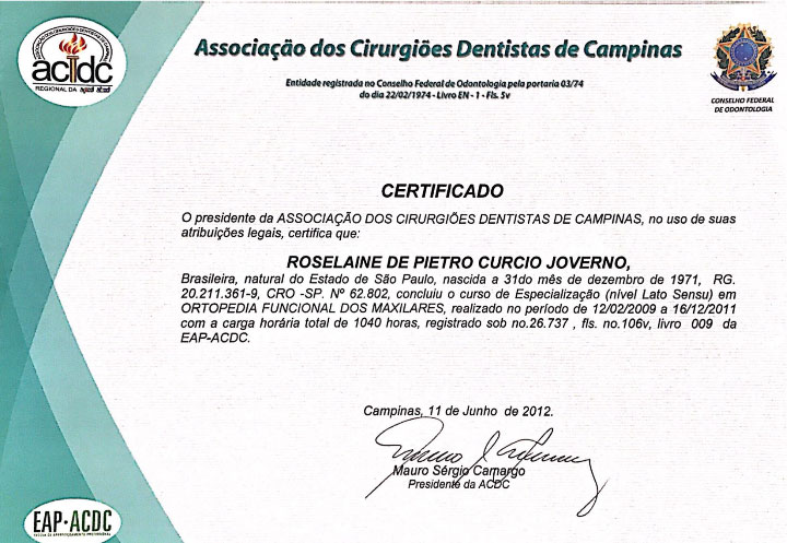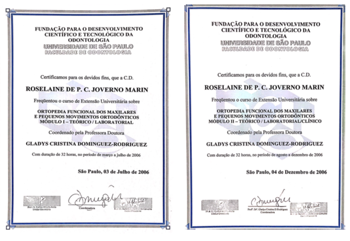 - Especialista em Ortopedia Funcional dos Maxilares e Ortodontia (2012)